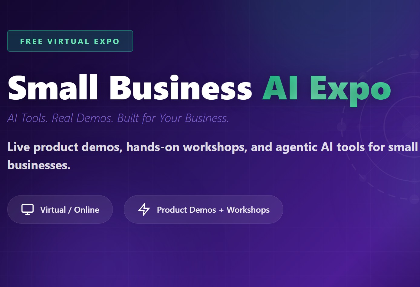 AI isn't just for big tech anymore — it's transforming how small businesses operate, compete, and grow. The Small Business AI Expo is a free, virtual event designed to show you exactly how AI and agentic tools can work for your business, no matter your size or technical background.